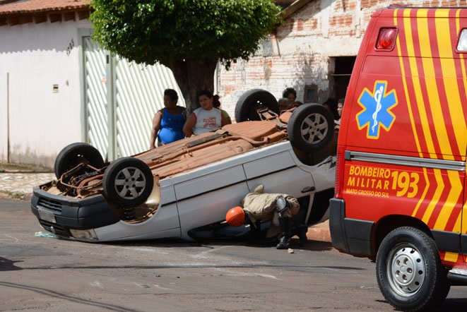 Uma jovem de 20 anos ficou ferida depois que carro em que conduzia, um Fiat Uno, capotar na Rua Barra Mansa, no Bairro Guanandi, em Campo Grande. Um motorista, não identificado, avançou a preferencial na Rua Caramuru e provocou a colisão.