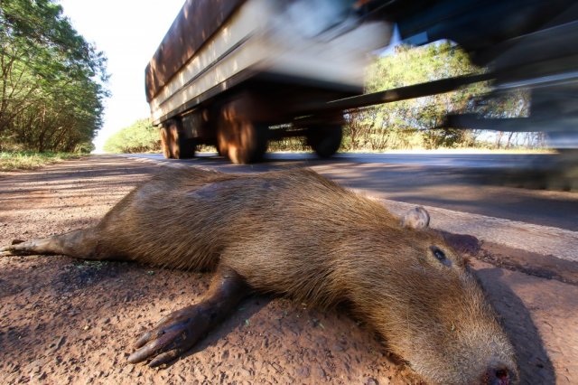 Alta velocidade é uma das causas de mortes de capivaras na BR-262