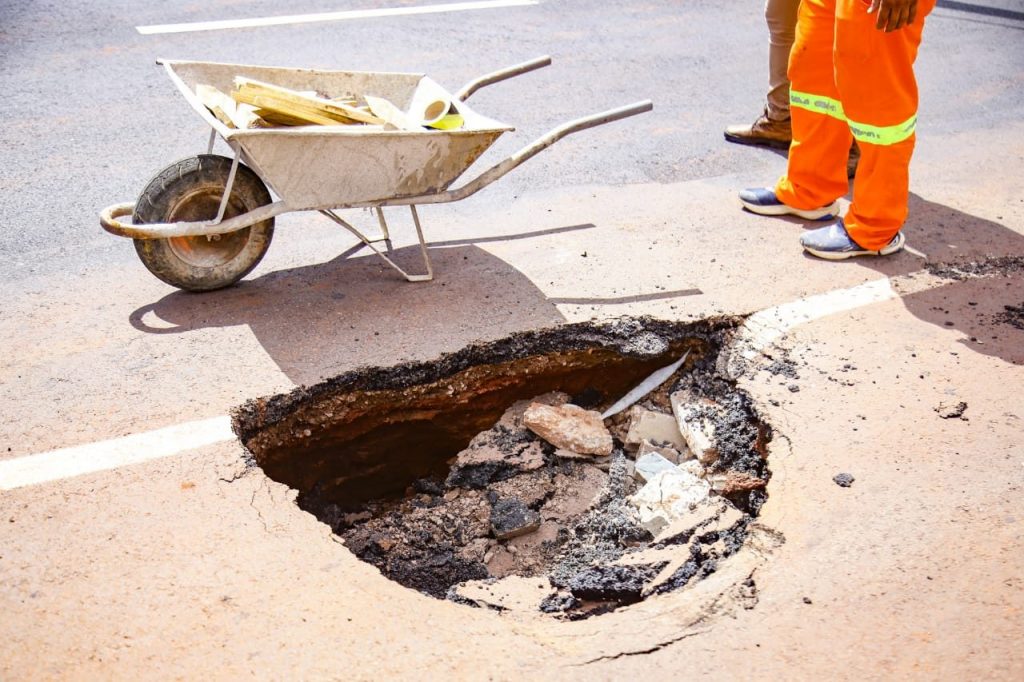 Asfalto da Rui Barbosa cede em trecho recém-inaugurado pela Prefeitura