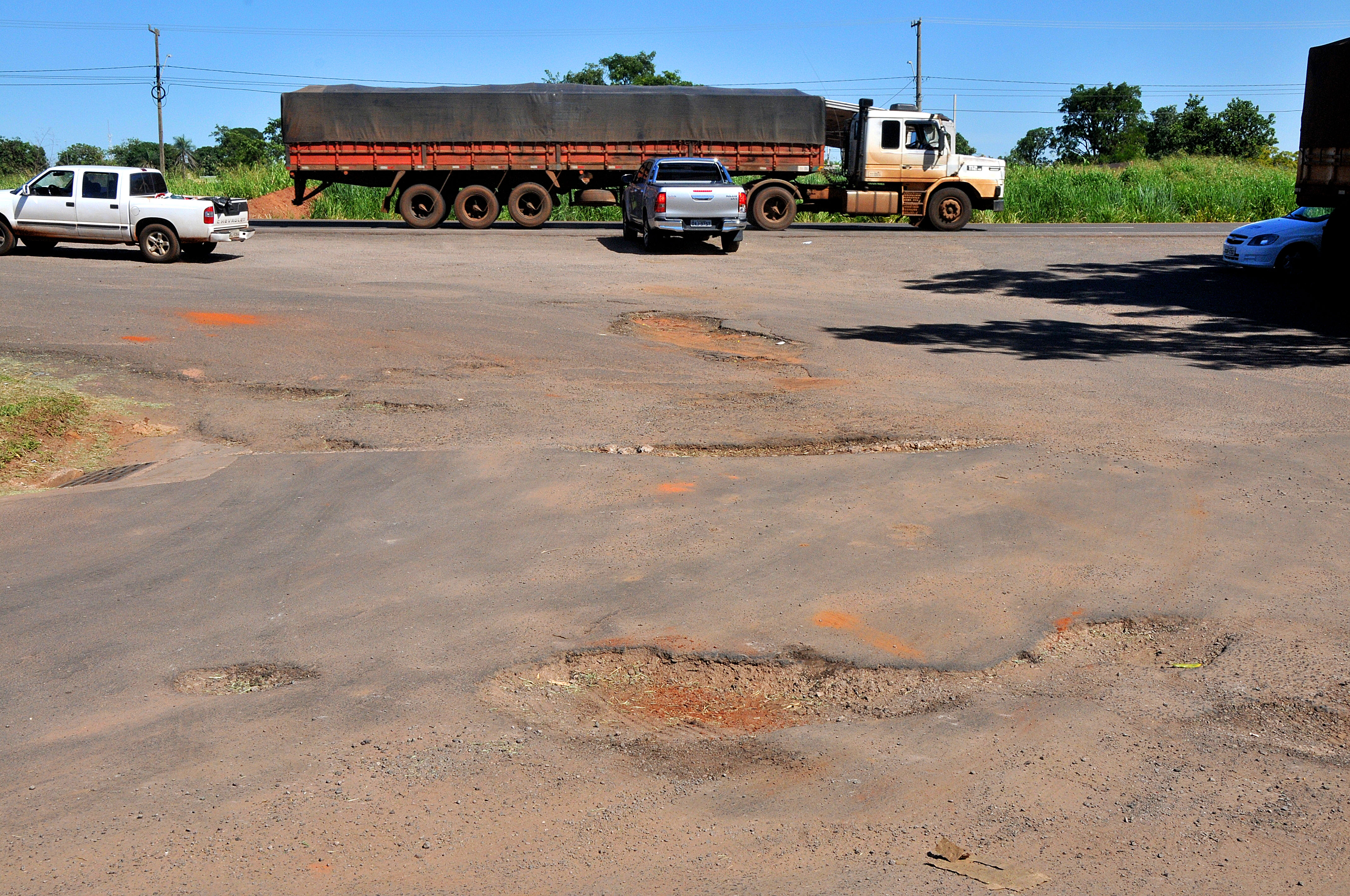 Com o grande fluxo de veículos pesados, a via de acesso ao Polo Industrial Norte de Campo Grande está esburacada e prejudicando o trânsito dos motoristas que pretendem chegar às empresas instaladas no local. O trecho fica à margem da BR-163 e nenhum órgão se responsabiliza pela recuperação.