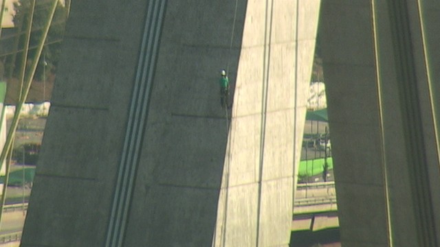 Atleta escala 138 metros da Ponte Estaiada para fincar bandeira