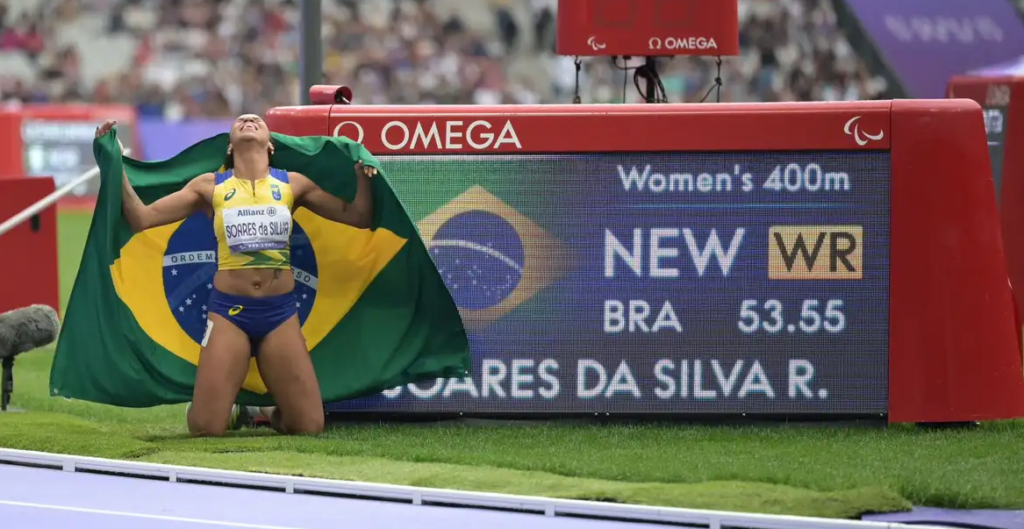 O atletismo brasileiro conquistou quatro medalhas na manhã deste sábado (7) nos Jogos Paralímpicos de Paris (França). O destaque no Stade de France foi a corredora maranhense Rayane Soares, que completou a prova dos 400 metros da classe T13 (atletas com deficiências visuais) com o tempo de 53s55 para conquistar o ouro e bater o recorde mundial da prova, marca que durava desde 1995.