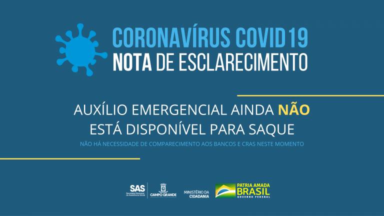 O Projeto de Lei do Auxílio, aprovado pela Câmara e Senado nesta semana, ainda precisa ser sancionado pelo presidente da República, por isso, ainda não está disponível para saque. Na tarde de ontem (30), o Ministério da Cidadania divulgou uma nota oficial em que orienta a população a não aglomerar os serviços dos Centros de Referência da Assistência Social.