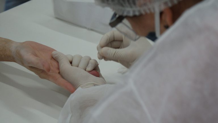 Caso a temperatura corporal esteja superior a 37,8ºC, a pessoa é convidada a realizar o teste rápido. O resultado sai entre 15 a 20 minutos. É feito ainda o preenchimento de um formulário onde a pessoa relata a presença ou não de outros sintomas, como dor de cabeça, tosse e coriza e informa se teve contato com caso positivo ou esteve recentemente em outros estado ou município.