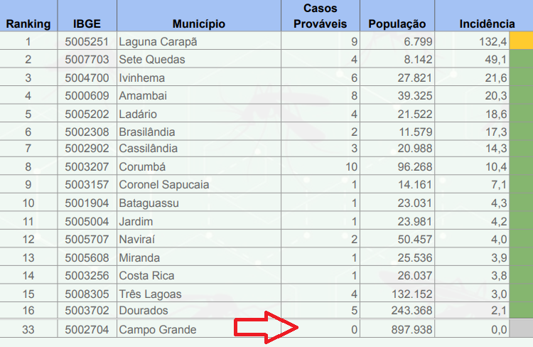 Conforme o boletim da SES/MS, em todo o estado, eram apenas 62 casos prováveis de dengue, notificados por 16 municípios. E apenas três casos confirmados da doença, sendo dois em Dourados e um em Sete Quedas.