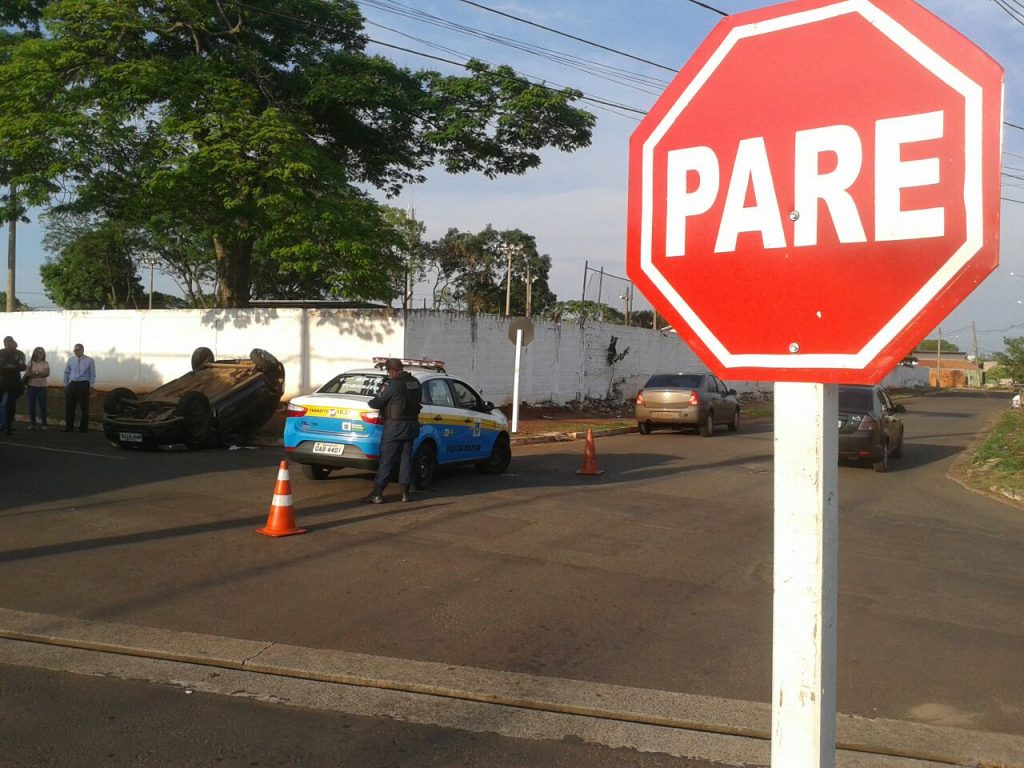 Carro avança preferencial e causa capotagem no Vilas Boas