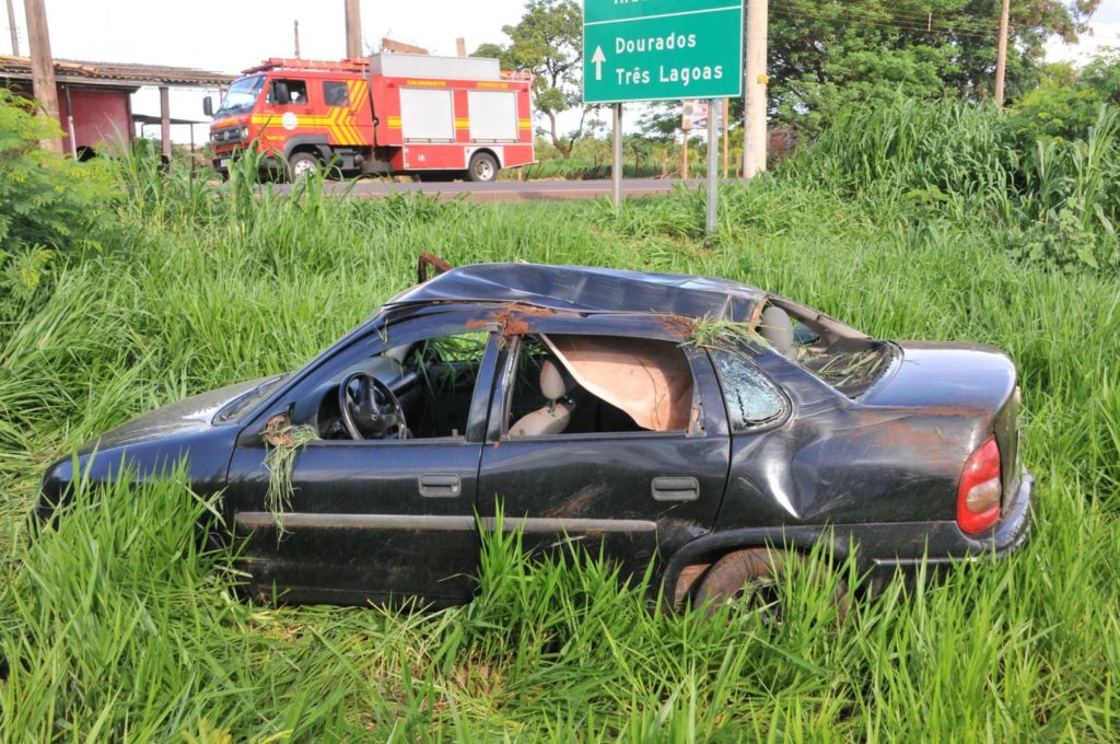 Como estava muito próximo, ele acabou perdendo o controle da direção e o carro capotou, parando em uma área de matagal às margens da rodovia.