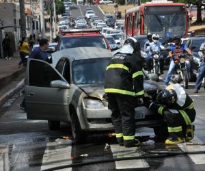 Carro pega fogo e tumultua trânsito na Afonso Pena