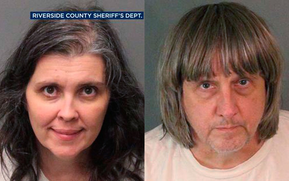 Louise Anna Turpin e David Allen Turtpin foram presos depois que uma das filhadas do casal, uma jovem de 17 anos, fugiu da casa, no domingo (14), e chamou a polícia. A adolescente telefonou para o serviço de emergência 911 de um celular que encontrou na residência.