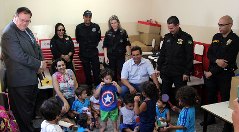 A entrega foi feita pelo diretor-presidente da Agepen, Ailton Stropa Garcia, acompanhado do diretor de Assistência Penitenciária, Gilson Martins, do diretor da Máxima, João Bosco Correia, do chefe de Gabinete, Dumas Torraca e dos servidores Marli Guerino, Flávio Marques, Thiago Leite e Maísa Rocha. O grupo foi recebido com festa pelos baixinhos, que não se contiveram e começaram a brincar no mesmo momento.
