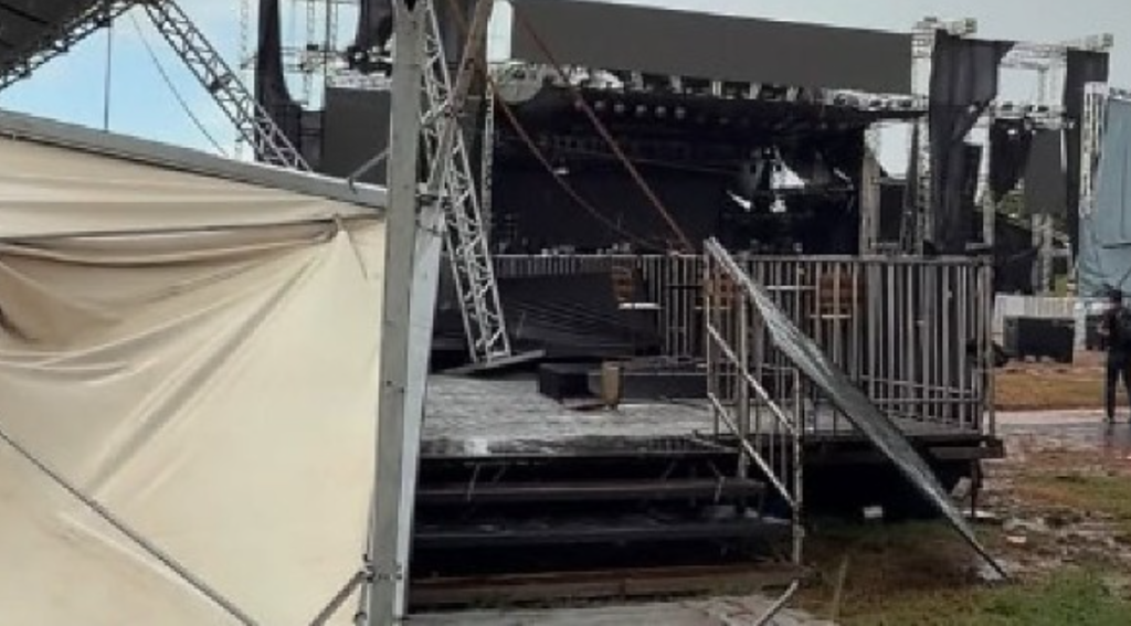Além do palco principal, há relatos de danos em algumas estruturas da feira agropecuária.