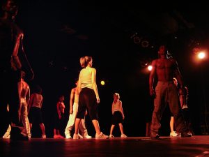Em cena, cinco intérpretes criadores se arriscam nas conexões criadas, uns com os outros ou consigo mesmo, em um processo contínuo  de revezamento, embate, liderança e experiência, onde a disputa pelo espaço é apenas uma desculpa. O espetáculo teve como aporte financeiro para sua criação o Fundos de Investimentos Culturais de MS (FIC) e realizou 20 apresentações em escolas públicas de Campo Grande, participando também em eventos como “Semana Pra Dança” e no projeto realizado pelo SESC Arsenal – Cuiabá/MT, “Ispiá na Rua”. A companhia é formada por jovens acadêmicos de educação física, artes cênicas, pedagogia e publicidade, que se dedicam à dança e que buscam conciliar seu tempo na atuação em diferentes frentes de trabalho.