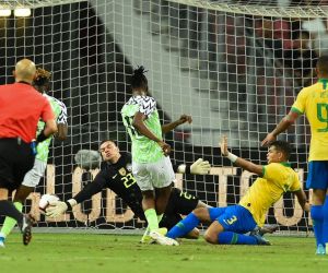 Com a saída de Neymar, o Brasil demonstrou muita dificuldade na criação e levou o primeiro gol em Cingapura aos 34 minutos: 1 x 0. Em jogada trabalhada pela seleção nigeriana, Simon achou Aribo dentro da área que, com tranquilidade, mandou a bola para o fundo do gol.