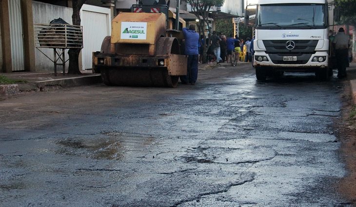 Em Fátima do Sul também estão em execução obras de pavimentação, drenagem e sinalização viária na Rua Delamar Silva, assim como o calçamento e fechamento do Parque de Eventos Beira Rio e a implantação e pavimentação dos 2,7 quilômetros de acesso à usina.