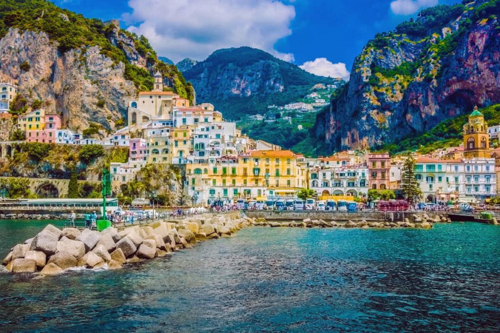 O mar azul e as casas coloridas no alto das montanhas tornam a Costa Amalfitana, ou Costa de Amalfi, um dos lugares mais encantadores do mundo.