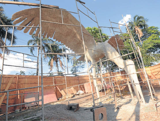 “Estamos colocando vergalhões, para dar mais sustentação. Também vou refazer toda a parte externa com cimento, argamassa e um material novo, o concreto expandido. Quando foram feitas pela primeira vez, eu usei pedrinhas. Com o acabamento é que dou toda a textura da ave”, explicou o artista.