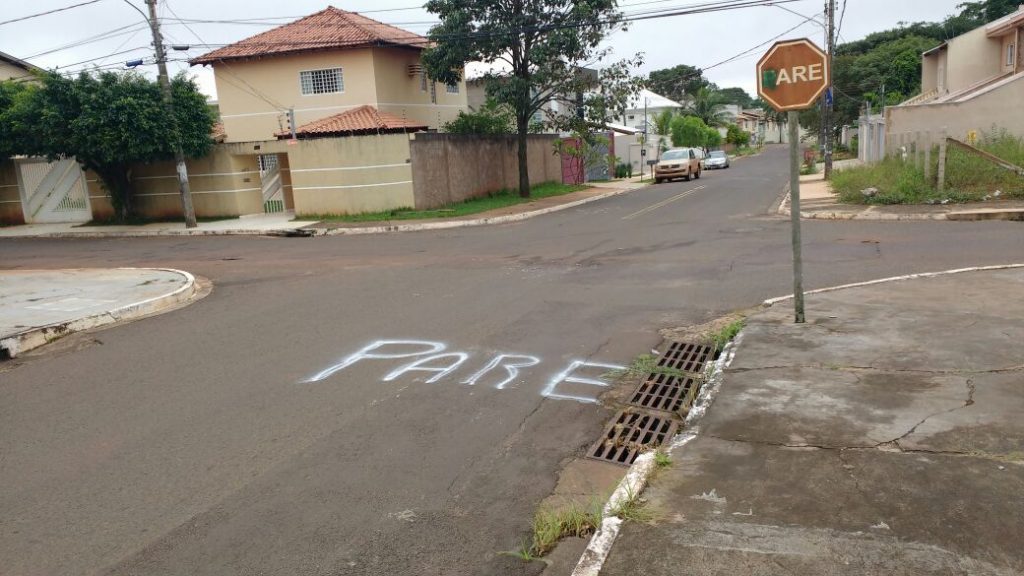 Depois de vários acidentes no cruzamento das ruas Resedá e Imbé, no Bairro Cidade Jardim, em Campo Grande, os moradores decidiram, por conta própria, intensificar a sinalização no local.