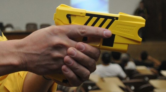 O equipamento está especificado na proposta de Catan. Trata-se de espargidor de agente químico lacrimogêneo, o popular gás, e pistolas de choque elétrico de contato direto e de lançamento de dados energizados.
