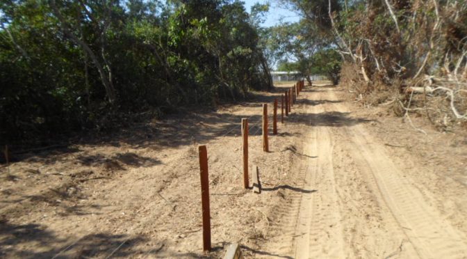 Campo Grande (MS) – Policiais Militares Ambientais de Corumbá em fiscalização fluvial pelo rio Paraguai localizaram desmatamento às margens do rio em área de matas ciliares – Área de Preservação Permanente (APP). O proprietário desmatou sem autorização ambiental área para abertura de picada e construção de cerca, que medida em GPS atingiu 0,630 hectares.