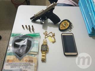 Os dois foram presos em flagrante por porte ilegal de arma de calibre restrito. O caso foi registrado na Derf e, com a dupla, ainda foram apreendidos uma corrente de ouro maciço, de 40 gramas, relógio importado de ouro, celulares e o carro.