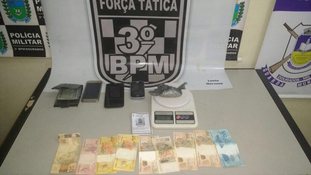 Com a constatação de que se tratava de um ponto de vendas de drogas, foi acionada uma das equipes da Força Tática da PM (Polícia Militar) para fazer buscas. No endereço, foi encontrada uma porção de 46 gramas de cocaína, uma balança de precisão e o veículo mencionado na conversar entre as duas mulheres. O carro, um Strada na cor branca e com placa de Dourados, tem queixa por roubo.