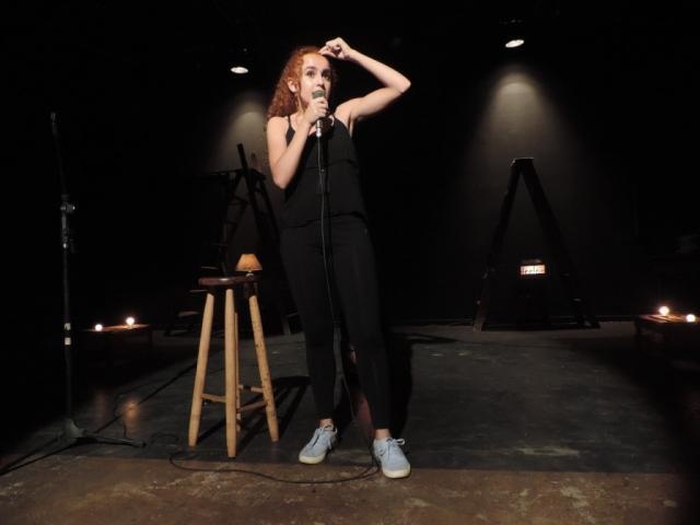 Roteiro e improviso - Interagindo ou se jogando ao chão, vale tudo para fazer a plateia rir. Raphaelle Machado encarou o público e falou sobre suas experiências do dia a dia como mulher, o atraso de menstruação, teste de gravidez, férias do trabalho e viagens. “A gente testa o nosso texto, e eu mesma preparei o meu”, disse.