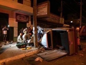 O empresário Maykon Ramos, de 28 anos ficou ferido na madrugada desta quarta-feira (16) após a caminhonete que conduzia tombar e bater em um poste, na avenida Mato Grosso entre as ruas José Antônio e 13 de Junho, em Campo Grande.