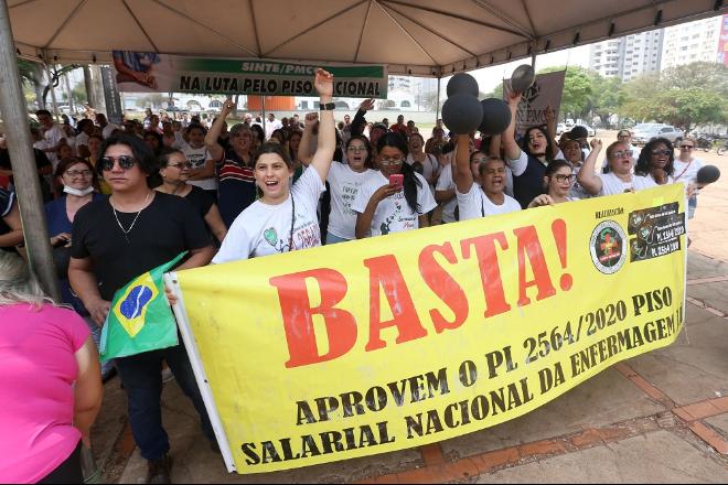A lei foi aprovada pelo Congresso após grande pressão da categoria, fixando o salário mínimo de R$ 4,750 mil para os enfermeiros.O presidente Jair Bolsonaro (PL) sancionou a legislação em 4 de agosto.