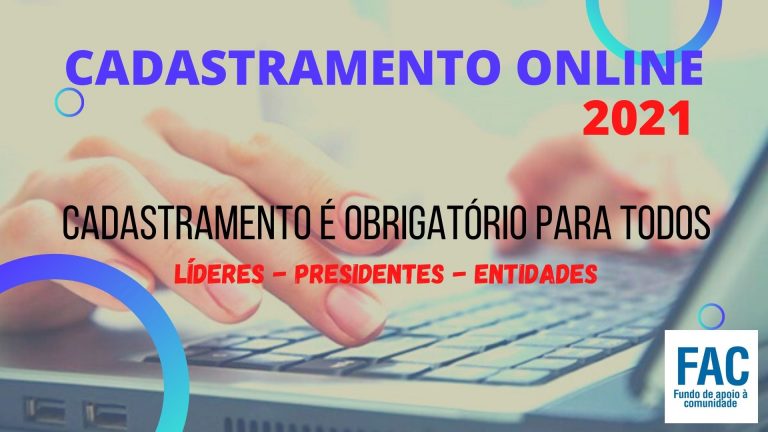 Para continuar participando das ações e campanhas do FAC em 2021, é obrigatório o preenchimento do formulário que estará disponível na terça-feira (26), por meio de um link. O cadastramento não será feito de forma presencial, ou seja, no prédio do FAC. Para a comodidade e segurança das lideranças e funcionários, tudo será feito pela internet, até o dia 05 de fevereiro.