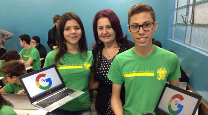 Campo Grande (MS) – A Escola Estadual José Maria Hugo Rodrigues iniciou nessa segunda-feira (5) a prova de conceito do Google for Education, projeto do Google, realizado em parceria com a Secretaria de Estado de Educação (SED) para inovar nas aulas e melhorar o desempenho dos estudantes por meio de ferramentas online, acessadas a partir de um “Chromebook”, computadores portáteis ligados à internet e que armazenam documentos em nuvens, sem ocupar a memória do equipamento.
