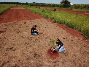 Em uma área dentro do Cepaer, Camila e a equipe técnica iniciaram o projeto com o plantio de várias espécies diferentes para avaliar o estabelecimento, crescimento e desenvolvimento delas.