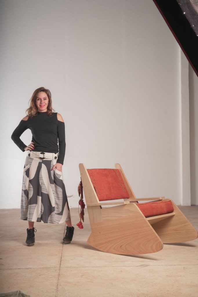 O interesse da arquiteta pela área surgiu em 2014, durante uma edição da Casa Cor. “Na época, eu fiz uma pesquisa e lancei a poltrona rock’n’roll, em comemoração dos 15 anos de carreira”, conta. O desejo de criar e principalmente o “fetiche por cadeiras”, comum, segundo ela, em designers, cresceu com o passar do tempo. “Eu sempre criei para os clientes nos projetos de arquitetura, mas comecei com os protótipos por conta própria em 2016. Lancei a Nhanderu, que acabou sendo publicada em uma revista nacional. Fiz uma pesquisa com tecidos elásticos tensionados, com o neoprene aplicado ao design e fui criando”, explica Luciana.