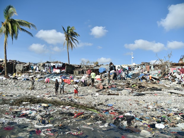 Casas ficam destruídas pela passagem do furacão Matthew por Jeremie, no Haiti (Foto: Carlos Garcia Rawlins/Reuters)