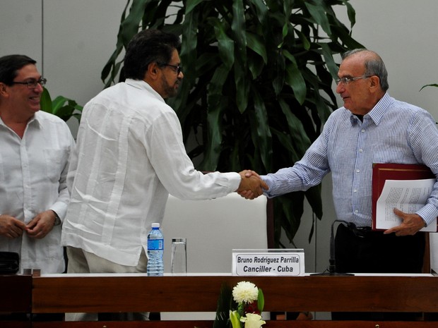 Os rebeldes das Forças Armadas Revolucionárias da Colômbia (Farc) e o governo colombiano anunciaram neste sábado (12), em Havana, um novo acordo de paz, após o “não” no referendo sobre uma versão anterior desse pacto para acabar com 52 anos de conflito armado no país.
