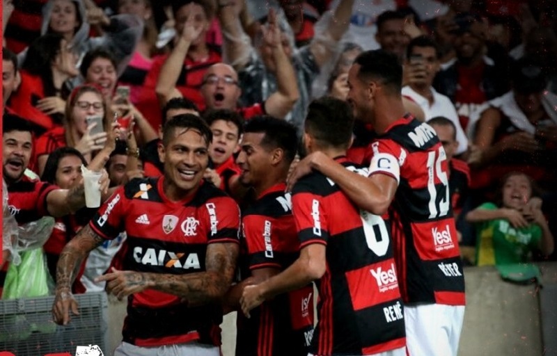 O primeiro gol do Flamengo saiu aos 5min do segundo tempo. Após cobrança de falta de Guerrero, Rodinei pegou rebote e chutou com força para abrir o placar.