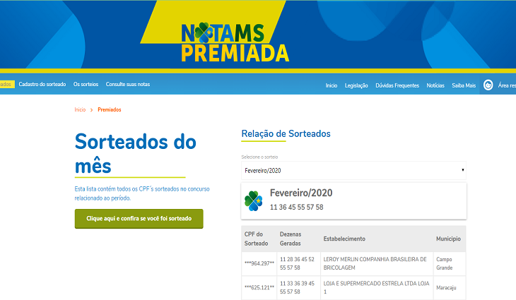 Para saber se foi contemplado, o consumidor deve acessar o site www.notamspremiada.ms.gov.br ir até o secção “lista de sorteados do mês” e digitar o CPF referente a data do sorteio do mês de abril. “É nossa intenção fazer com que as pessoas recebam o seu prêmio, e não o dinheiro retornar para o tesouro do Estado”, reiterou Amarildo Cruz.