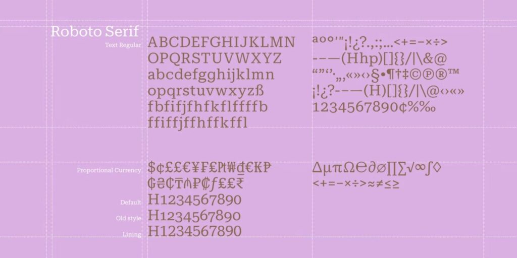 “Roboto Serif é uma família tipográfica variável projetada para criar uma experiência de leitura confortável e sem atrito. Mínimo e altamente funcional, é útil em qualquer lugar (mesmo para interfaces de aplicativos) devido ao extenso conjunto de pesos e larguras em uma ampla variedade de tamanhos ópticos”, foi revelado na página oficial da fonte.