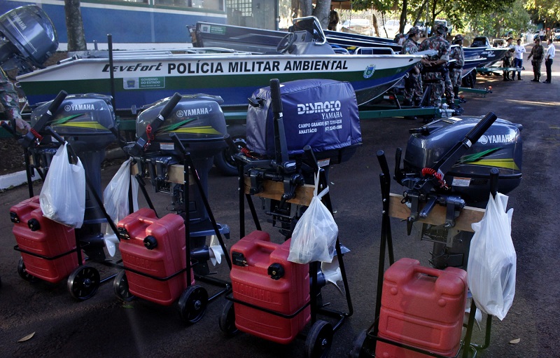 Ao todo, foram entregues nesta quarta-feira 16 barcos, 14 motores, 12 reboques e um caminhão para unidades da PMA em Aquidauana, Bataguassu, Bela Vista, Bonito, Campo Grande, Coxim, Jardim, Mundo Novo, Porto Murtinho, Batayporã, Rio Negro e Três Lagoas.