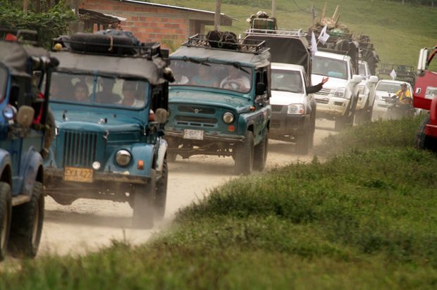 | Veículos das Farc chegam a uma zona de segurança em El Paraíso, no departamento de La Guajira |