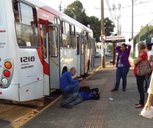 Um homem, ainda não identificado, teve convulsões ao cair de ônibus na manhã desta terça-feira (11) na Rua Marquês de Lavradio, em Campo Grande. O rapaz passou mal dentro do coletivo, caiu assim que as portas se abriram, bateu a cabeça e começou a se agitar involuntariamente.