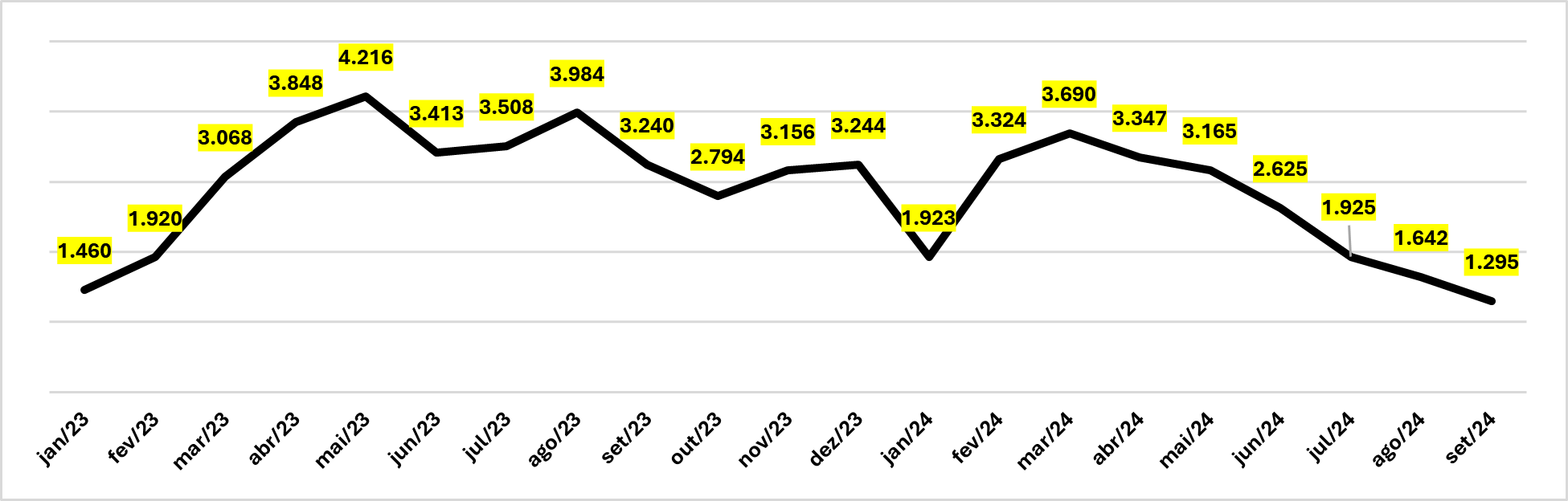 Série Histórica – Flagrantes de brasileiros na fronteira dos EUA (2023-2024)