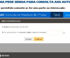 Três dias após o Correio do Estado revelar que um policial federal teria vazado informações de um sistema da polícia para suspeito de integrar milícia, em Campo Grande, o processo sobre o caso foi colocado em segredo de Justiça. Em consulta ao site do Tribunal de Justiça de Mato Grosso do Sul (TJMS), nesta segunda-feira (12), a partir do número do processo, a mensagem disponível era: “Atendendo a resolução 121 do CNJ. Se for uma parte ou interessado, digite a senha do processo”.