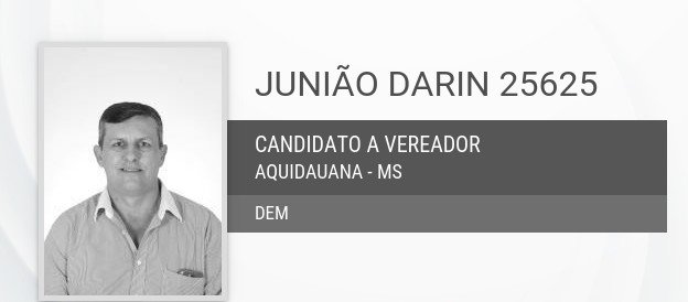 Junião Darin, como se apresenta, foi candidato a vereador no município de Aquidauana, em 2016. Na ocasião, Recebeu 51 votos e não se elegeu.