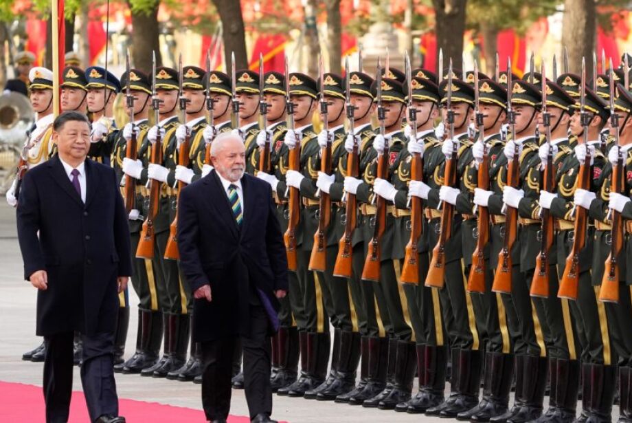 A recepção de Lula pelo presidente da China teve a banda do exército chinês tocando o Hino Nacional do Brasil e até a música “Novo Tempo”, famosa na voz do cantor Ivan Lins nos anos 1980.