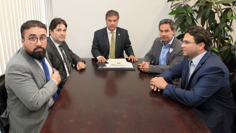 Prefeito, acompanhado do senador Nelson Trad Filho, dos secretários municipal e estadual de Saúde, José Mauro Filho e Geraldo Resende, respectivamente, e do secretário de Finanças e Planejamento, Pedro Pedrossian Neto, além do procurador do Município, Alexandre Ávalo, se reuniu com Mandetta para pleitear investimentos para a saúde de Campo Grande.