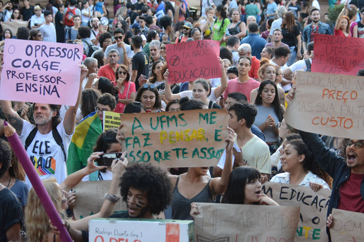 De acordo com o estudante Victor Prado, de 19 anos, um dos organizadores do ato, o encontro é a favor da educação pública e também básica. Desde as 15h, a população começou a se concentrar. “[A manifestação] é em defesa da UFMS [Universidade Federal de Mato Grosso do Sul], da IFMS [Instituto Federal de MS], pela educação básica; é pela defesa generalizada por todos os afetados com os cortes”, disse.