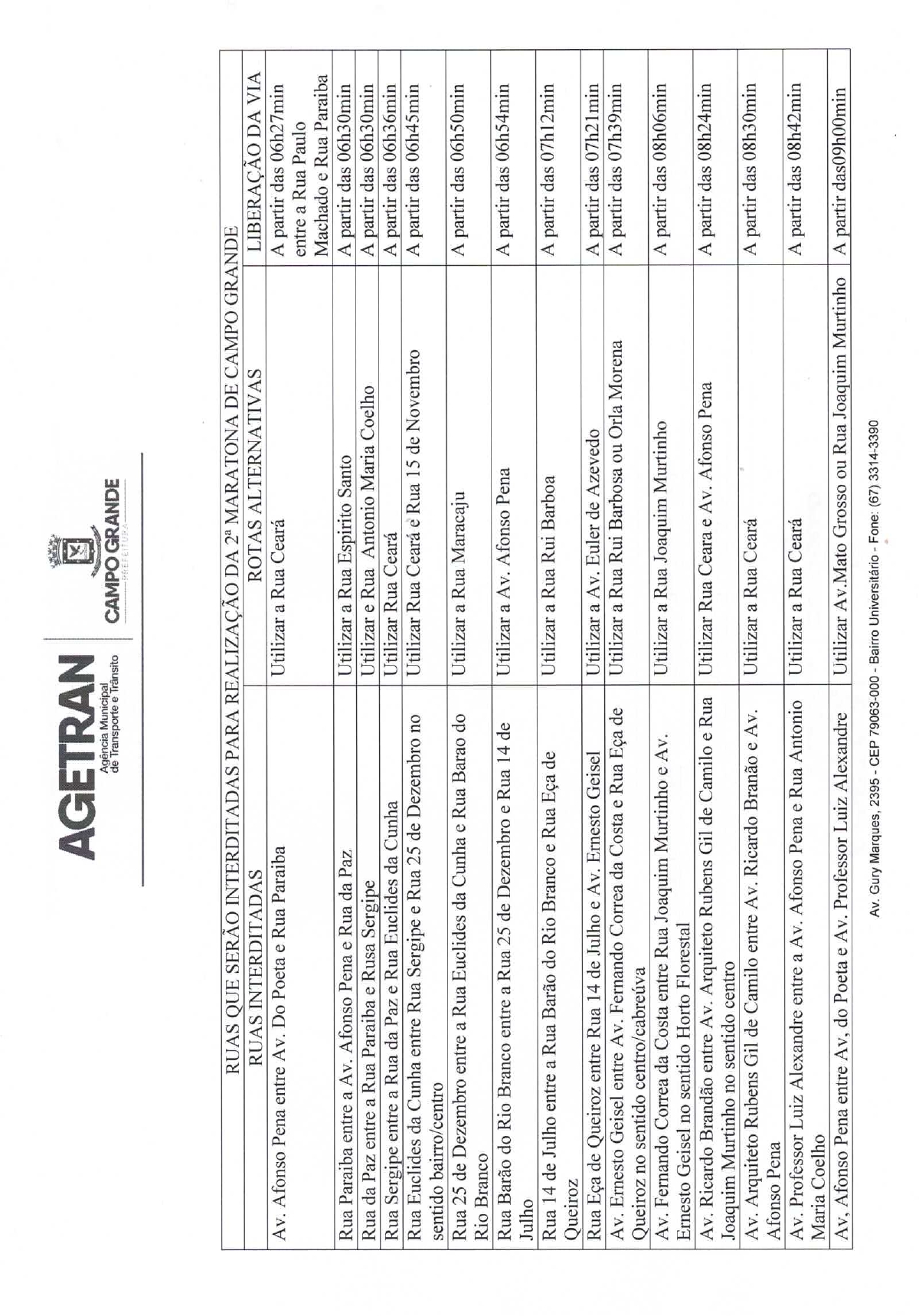 Segundo a Agência Municipal de Transporte e Trânsito (Agetran), o trajeto irá interditar parte das principais avenidas de Campo Grande, a partir das 5h30. Enquanto a liberação das vias acontecerá de forma gradual. Veja quais: