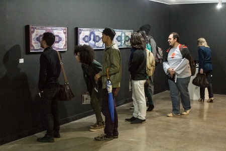 Logo após os presentes foram convidados a visitar as exposições. “Moedas”, de Alexandre Frangioni, busca provocar uma reflexão sobre as possíveis relações entre valores históricos e atuais. Ao produzir as obras com o dinheiro antigo e sem validade, estes objetos passam, então, a valer pelo que não são, pela intensidade da negação de que são capazes.