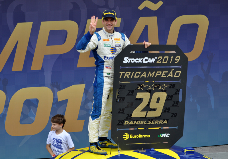 Daniel Serra confirmou o favoritismo e conquistou o tricampeonato da Stock Car. O título do piloto da Eurofarma foi confirmado depois que ele terminou em segundo lugar na última corrida da temporada de 2019 da categoria, em Interlagos, neste domingo.