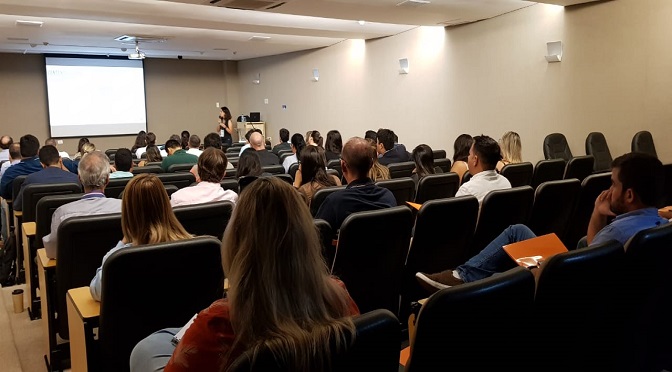 Gabriela Otero (de crachá), uma das ministrantes da palestra